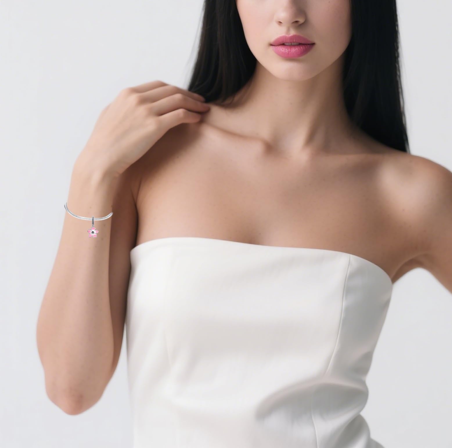 - VERSATILE DESIGN: Beautiful pink cherry blossoms charm showcases a feminine pink and silver color scheme with intricate petal detailing